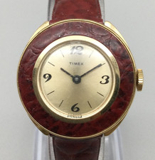Vintage Timex Manual Wind Watch Womens 27mm Gold Tone Leather Bezel 60s 70s