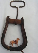 Vtg Wood Leather Horse Saddle Stirrup Lead Toy Japan Horse Rusty Barn Hay Hook