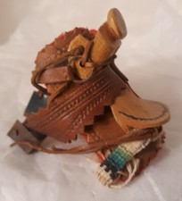 Vtg Toy Horse Saddle Leather Wood Miniature Souvenier Southwestern Equestrian