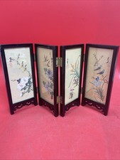 Vintage 4 Panel Oriental Mini ScreenTrees & Birds Table Art 7” H X 12.5”W