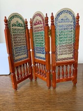Brass Islamic Wooden Folding Screen Mini Vintage Handmade Three Partition Décor