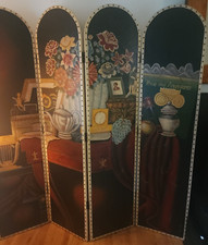 Vintage Hand Painted 4 Panel Wall Divider Screen 64"