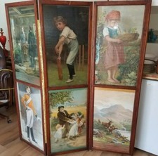 Antique Screen English Victorian Prints room/ dressing divide 3-fold Impressive