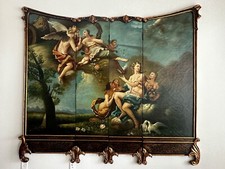 Antique Fireplace Screen Wood Frame Canvas Painted Panel Vintage