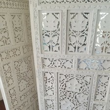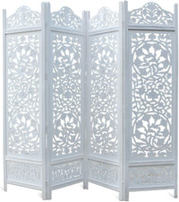 Hand Carved Wooden Room Divider Folding Privacy Screen 4 Panel Reversible Boho