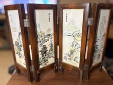 Vintage Miniature Table Top Screen Oriental/Asian. Painting OnCeramic Stone
