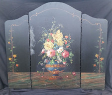 Antique Leather 1920's Floral Urn Fireplace Screen Oil Painting Folds 37"h x41"