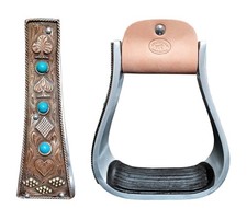 Horse 5" Aluminum Antique Copper Cactus Cactus Engraved Western Saddle Stirrups