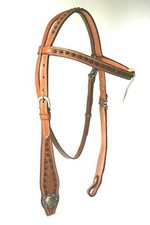 Cashel chocolate leather Western futurity browband headstall w/antiques dots