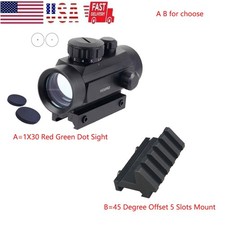 Optics 1X30mm Red Green Dot Sight/45 Degree Offset Picatinny Rail 5 Slots Mount