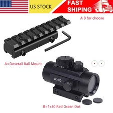 1x30 Tactical Red Green Dot Reflex Sight Scope/Dovetail to Picatinny Rail Mount