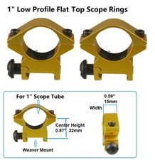 Gold Color Low Scope Rings Picatinny Weaver Mount, For 1" Tube Optics