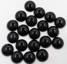 Vintage Antique 1800s Black Glass Mourning Round Cabachon 20PC 15mm C29-53