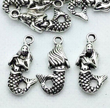 20 pieces Antique Silver Mermaid Charms Pendants Sea Nautical Ocean