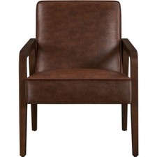 PU Leather Accent Chair, Mid-Century Modern Armchair Wood Frame for Living Room