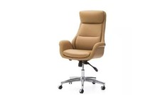 Glitzhome Mid-Century Modern Leatherette Adjustable Office Chair Camel