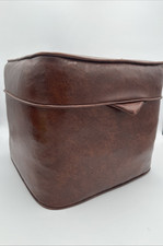 Vintage Mid Century Modern Square Brown Vinyl Ottoman Footstool 14” x 13” EUC