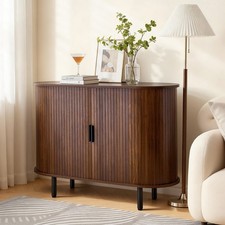 Uimoso 40 in Coffee Bar Cabinet Mid Century Fluted Buffet Table 2 Sliding Doors