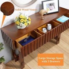 52 Inch Mid Century Farmhouse Fluted Solid Wood Sofa Table with Storage Drawers