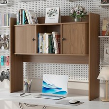 Mid Century Modern Desk Hutch Storage, 36 x 32 Inch Fluted Desktop Bookshelf