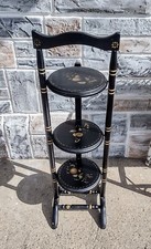 Vintage Mid Century Style Black Gold Folding 3 Tier Wood Shelf w/Stenciled Fruit