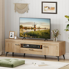 Stylish Mid Century TV Stand for 65" TV with Storage Cabinets & Drawer