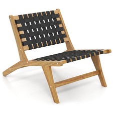 Teak Wooden Chair w/ Woven Webbing Seat & Backrest for Patio Mid Century Modern