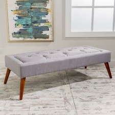 Pyram Mid-Century Modern Button Tufted Fabric Ottoman Bench