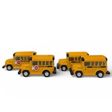 Vintage Die-cast School Bus Vehicle Party Favor Pullback Toy Collectible 4pcs