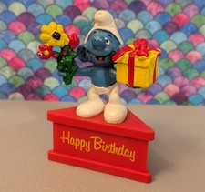 Smurfs Happy Birthday Cake Topper - Vintage Smurf-A-Gram Party Decor Toy