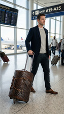 Vintage Leather Rolling Duffle Bag with Wheels