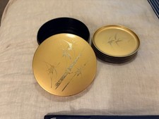 Vintage Mid Century Modern Otagiri Gold Lacquerware 5 Coasters in Original Case