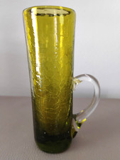 Vintage Mid Century Modern Crackle Glass Shot Glass, Olive Green