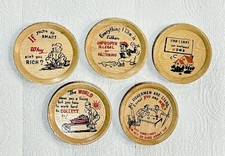 Vintage 1950s Wood Joke Coasters Set of 5 Japan Mid Century Barware Funny Saying