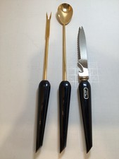 Vintage Mid Century Black and Goldtone 3 Piece Bar Tool Set