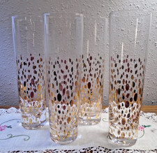 Mid Century Modern Barware Tall Glasses GOLD DOTS Set of 4