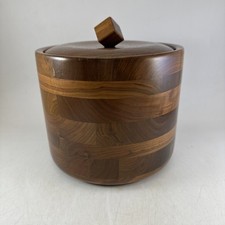 Fitzhugh Mid Century Modern BOHO Solid Walnut Ice Bucket W Glass Insert USA