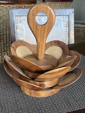 mid-century modern Sere wooden 12 coaster’s set with a teardrop-shaped holder.