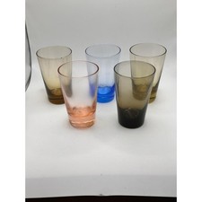 VTG Hand Blown Colored Cordial Shot Glasses Set 5 MCM Mid Century Barware 3.5"