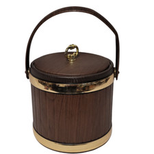 Vintage Mid-Century Modern Irvinware Ice Bucket With Wood Grain Finish