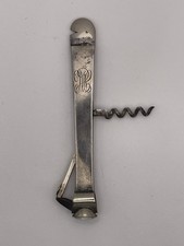 Antique Sterling Silver Travel Corkscrew Wine Bottle Opener, Folding, Cased