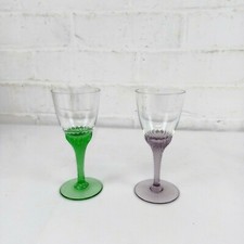 Vintage Pair Of 2 Fenton Ruffled Stems Shot Glasses Green & Purple
