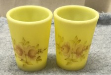 Two Fenton Vaseline Shot Glasses Opalescent Handpainted And Signed V. Fielder