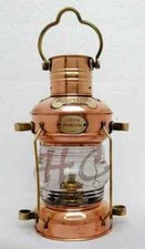 15" Antique Ship Lantern Boat Light Height Solid Brass & Copper Anchor Oil Lamp