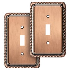 Henne Bery Rope Edge Decorative Wall Plate Single Toggle 2PK, Antique Copper