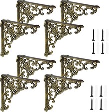 Lounsweer 4 Pcs Heavy Duty Antique Brass Shelf Brackets 8'' Wall Mounted...