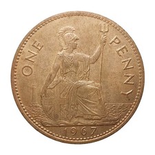 1967 UK Penny | Elizabeth II Young Head | Antique British Coin Z2758