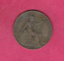 GREAT BRITAIN BRITISH GB UK KM794.2 1909 F FINE-NICE OLD ANTIQUE PENNY COIN