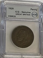 1928 United Kingdom UK Great Britain Antique One 1 Penny Certified ICG Genuine