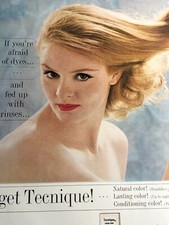 1961 Pretty Lady Pin Up Ad Tecnique Hair Care Mid Century Modern Doo Girl